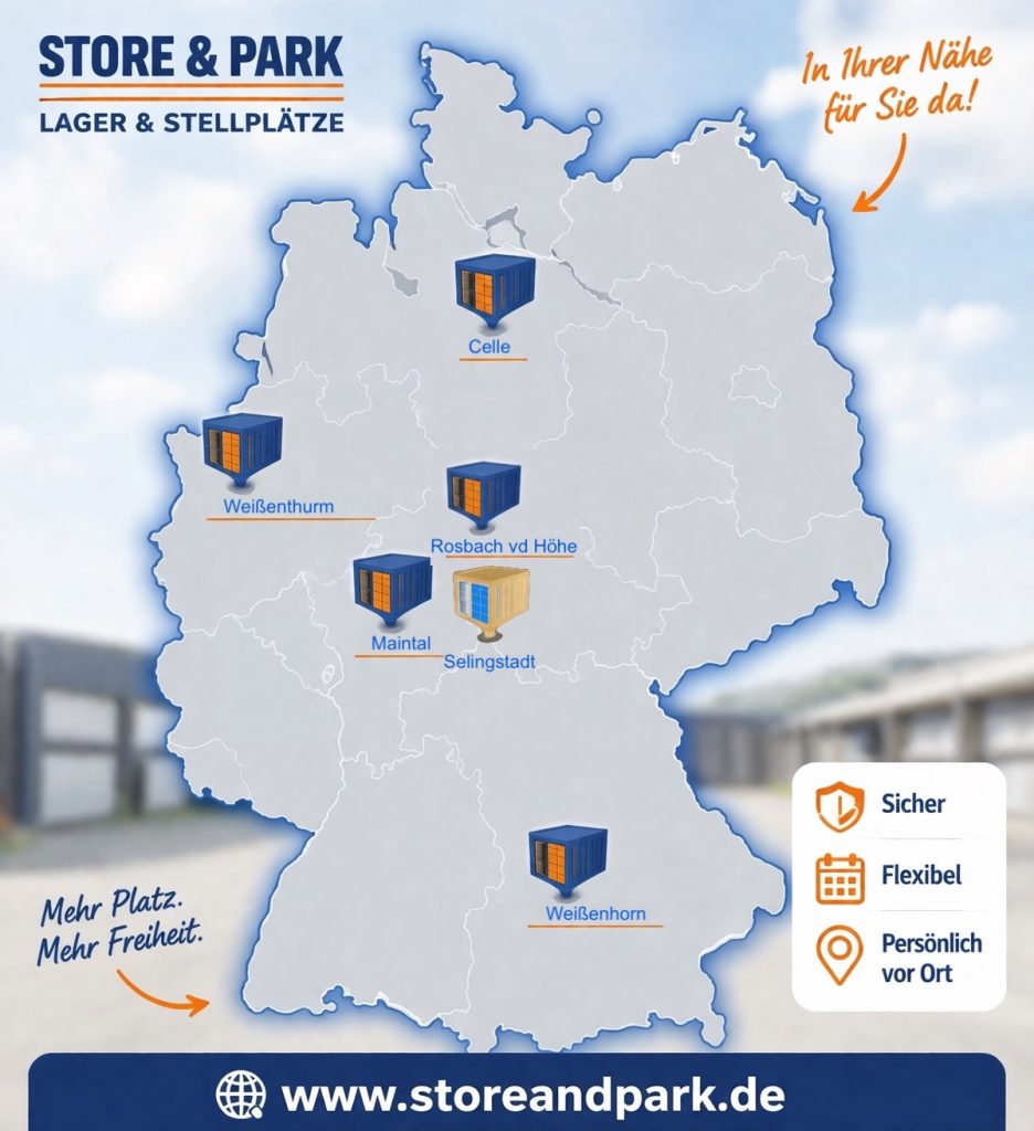 Wir bieten sichere und flexibel Lagerräume Deutschlandweit in Größen von 4qm bis 14qm, TÜV-geprüfte Lagerräume, mit Anti-Kondensationsschutz, Sicher und flexible Lagerräume...